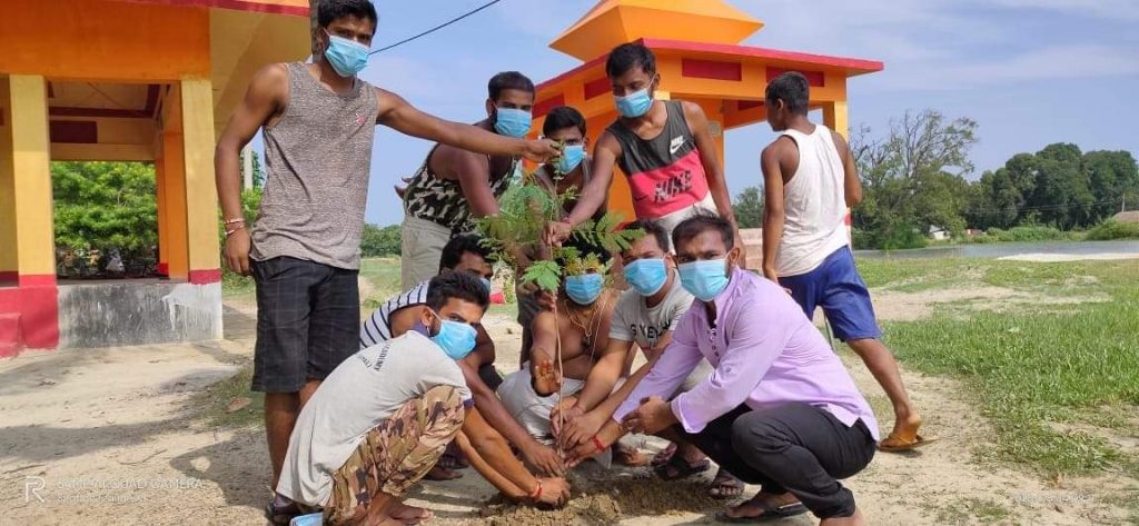 सिरहाका युवा द्वारा शिव मन्दिरको प्राङ्गणमा दर्जनौं बिरुवा रोपियो