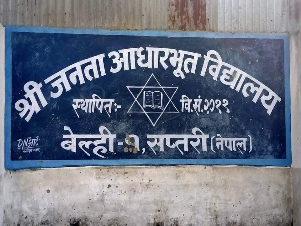सप्तरी जिल्लाको एक बिद्यालयमा गत महिनौदेखी तालाबन्दी भएर विद्यार्थीहरुको पठनपाठन अबरुद्ध भएका छ्न।नेपाल सरकारले गत चैत्र ११ देखि गरेको लकडाउनले पठनपाठन अबरुद्ध भएको थियो।लकडाउन खुलेको एक साता नबित्दै तालाबन्दी भएर बेल्ही स्थित श्री जनता आधारभुत बिद्यालयका विद्यार्थीहरु राजनीतिले अस्तव्यस्त सो बिद्यालयमा पढ्न पाएका छैनन्।