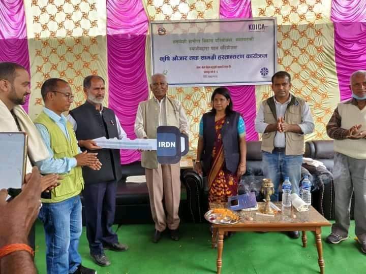 त्यस्तै पहिलाे चरणमा रिपर ५ थान र मिनिटिर ६ थान गरि कुल १७ लाख ९२ हजार बराबरको कृषि यन्त्र हस्तान्तरण गरिएको थियाे ।