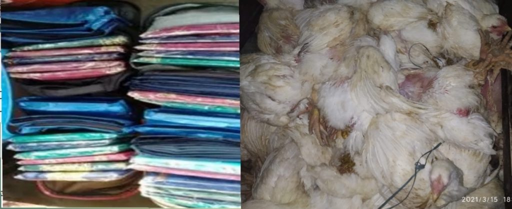 त्यसैगरी प्रहरीले भारत बाट अवैध रुपमा भन्सार छली ल्याई लुकाई छिपाई राखेको करीब १८ हजार ७ सय मुल्य बराबरको ५२ गोटा (अंन्दाजी ८५ किलो.) बोईलर कुखुरा रामग्राम नगरपालिका वडा नं. ४ बाटबरामद गरेको जनाएको छ । बरामद भएका सम्पुर्ण सामान र बोईलर कुखुरा आजै आवश्यक कारवाहीको महेशपुर भन्सार कार्यालय र पशु क्वारेन्टाइन महेशपुरमा पठाईएको जिल्ला प्रहरी कार्यालय पश्चिम नवलपरासीका प्रहरी नायब उपरीक्षक राजु लामाले जानकारी दिनु भएको छ ।