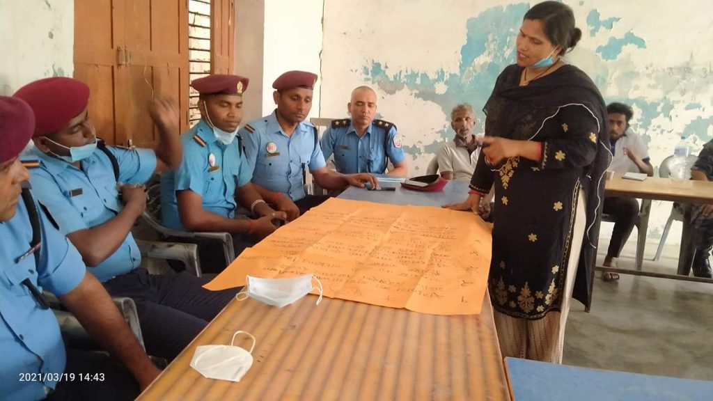 प्रहरी र न्यायिक समिति काे काम , कर्तव्य र अधिकार काे बारेमा , हाम्रो समाजमा भएका परम्परागत मुल्य मान्यताहरु काे बारेमा , बाल बिबाह , रक्सी , महिला हिंसालाई कसरी कम गर्न सकिन्छ महाराजगन्ज नगरपालिका भित्र समुदाय र प्रहरी बीच सम्वाद कार्यक्रम छलफल भएको थियो ।