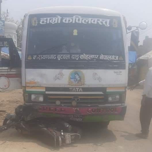 जिल्लाको कृष्णनगर नगरपालिका ११ झिंगहा आर.टि.ओ. सडकमा बसले ठोकिँदा मोटरसाइकल चालकको मृत्यु भएको प्रहरीले जनाएको छ । लु १ ख ७४५० नम्बर बसले यु.पी.५५ एच. ०३७५ नम्बरको मोटरसाइकललाई ठोकिँदा कृष्णनगर १२ नारायणापुर निवासी ३५ वर्षका रामबरण यादवको मृत्यु भएको इलाका प्रहरी कार्यालय गणेशपुरका प्रहरी निरिक्षक रण बहादुर विष्टले जानकारी दिनुभएको छ ।