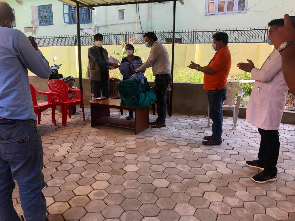 चेक तथा स्वास्थ्य सामग्री ग्रहण गर्दै अस्पताल विकास समितिका अध्यक्ष भण्डारीले कोरोना महामारीको समयमा मायादेवी च्यारिटेबल फाउण्डेशनले गरेको सहयोगले अस्पताललाई ठुलो सहयोग भएको बताउनु भएको छ । आर्थिक तथा स्वास्थ्य सामग्री हस्तान्तरण कार्यक्रममा भीम अस्पतालका कोभिड फोकल पर्सन डा. आरिफ हुसेन , मायादेवी च्यारिटेबल फाउण्डेशनका सल्लाहकार बिरेन्द्र ज्ञवालि, सदस्य बिनोद रौनियार, जुबैर खान लगायतको सहभागिता रहेको थियो ।