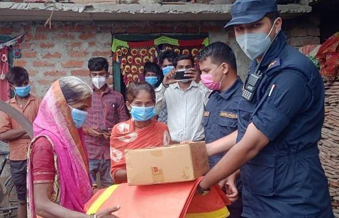 अबिरल बर्षाका कारण घरमा क्षेती/बिस्थापित परिवारलाई नेपाल प्रहरी निरीक्षक रविन्द्र महतले उद्धार गरी खाद्यान्न वितरण गर्दै