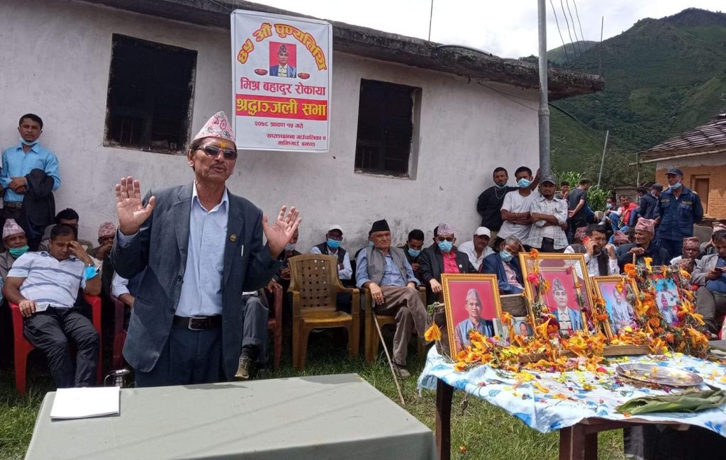 केही दिन अगाडि नेकपा एमालेका नेता मिश्र बहादुर राेकायाकाे मृत्यु भएको थियाे । राेकाया निकै पार्टीमा लगनशील भलाद्मी र राजनीतिक जिवनमा अग्रसर व्याक्तिकाे रुपमा चिनपरित व्याक्तिकाे रुपमा रहेका थिए ।