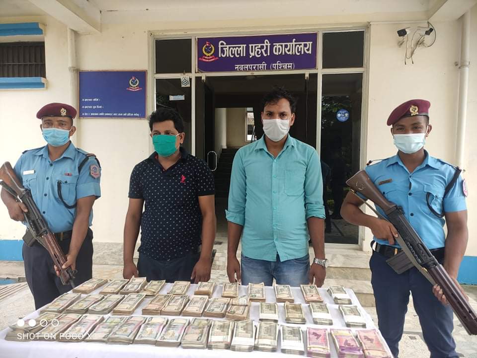जिल्ला प्रहरी कार्यालय पश्चिम नवलपरासीले आज सोमबार १८ लाख ५० हजार नेपाली रुपैयाँ र ९ लाख भारतिय रुपैया सहित २ जनालाई पक्राउ गरेको छ ।