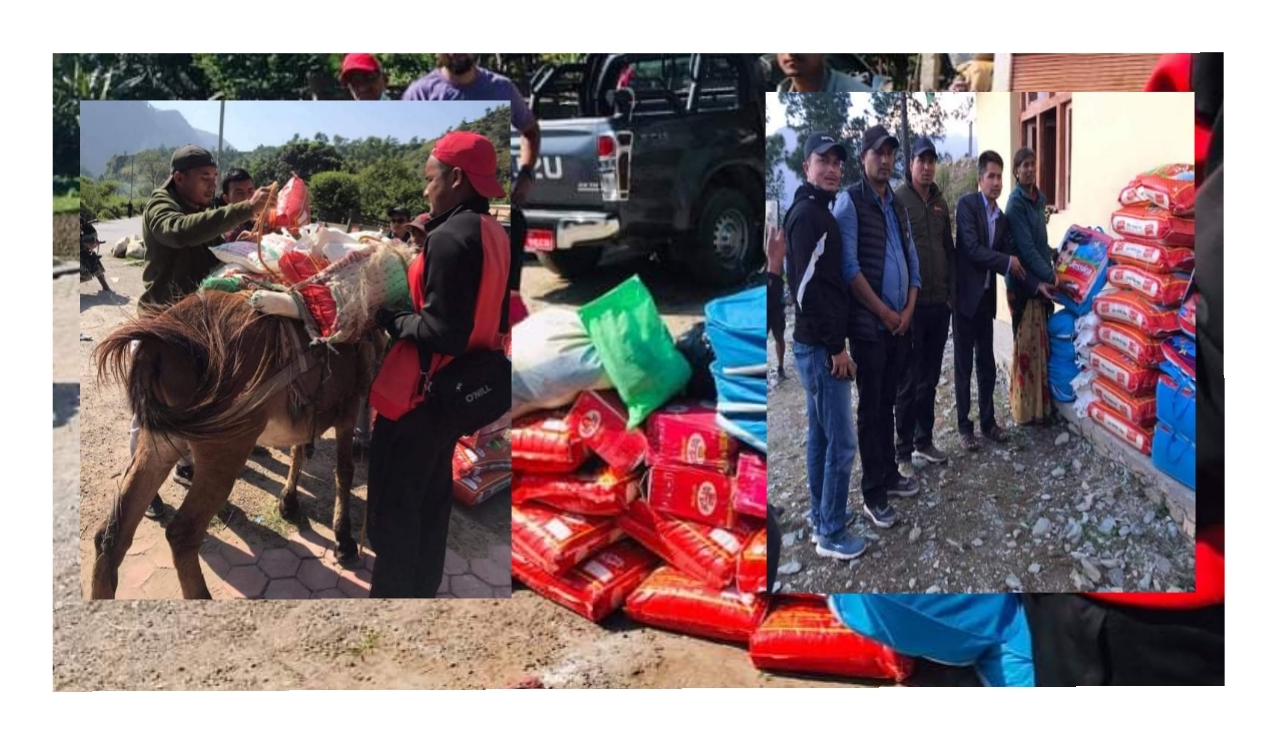 आज झाेता देखि खच्चरमा राहत सामाग्री बाेक्दै बितरण गरेकाे नेता विशाल धामीले बताए । उनले भने २५ जना परिवारलाई १६ बलाङ्केट १५ बाेरा चामल १३५ केजी दाल ५० कट्टा आटाे वितरण गरेकाे हाे । त्यसै गरि समाजसेवी अक्कल बाेहराले ३० हजार नगद सहित ९ बलाङ्केट भैरव मावीका विव्यस अध्यक्षकाे नेतृत्वमा १२ हजार २ सय नगद हस्तान्तरण गरिएको धामीले बताउनु भयाे । भाेली खप्तड छान्नामा गरिने उहाको भनाइ छ ।