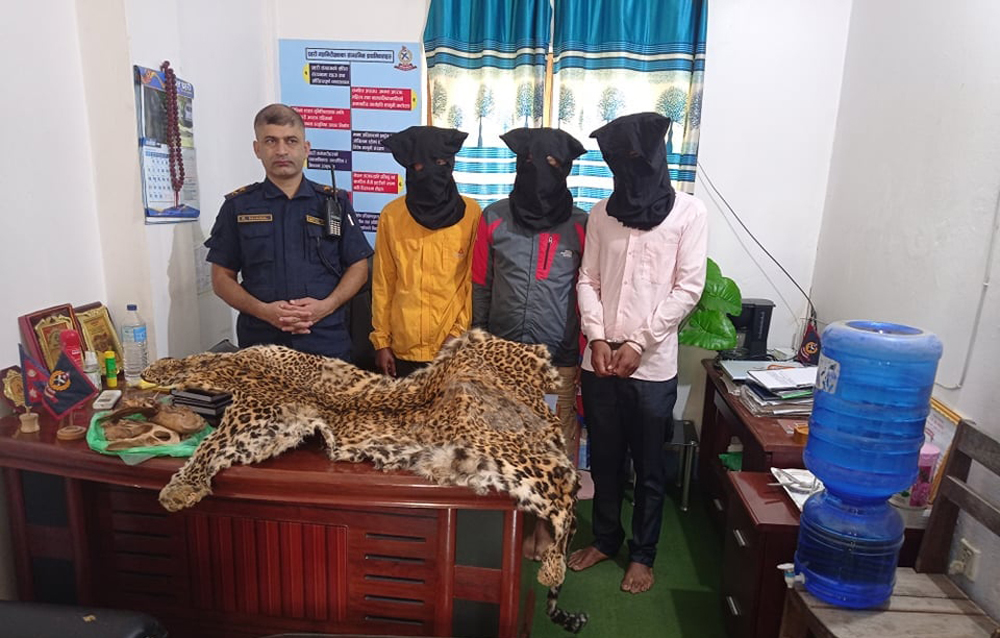 प्रहरी नायव उपरीक्षक खनालका अनुसार पक्राउ पर्नेमा पञ्चपुरी नगरपालिका–७ सुर्खेतका २४ वर्षीय रमेश बयक, सोही ठाउँका २८ वर्षीय बसन्त बिसी र राप्तीसोनारी गाउँपालिका–९ बाँकेका हिरासिंह विक छन् । उनीहरूको साथबाट चितुवाको छाला १ थान र १ किलो ४० ग्राम हड्डी बरामद गरिएको पनि प्रहरी नायव उपरीक्षक खनालले जनाए ।