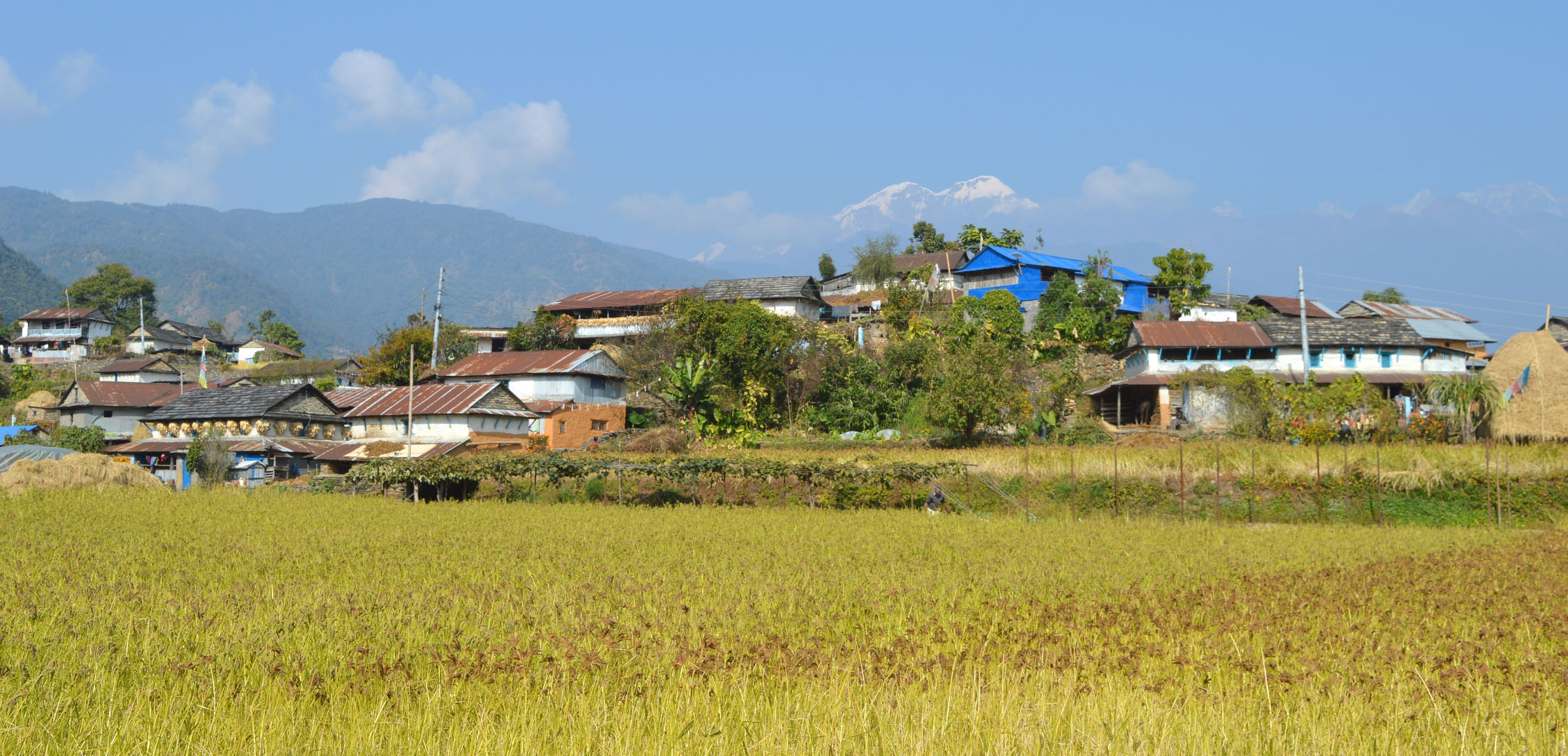 गुचमुच्च परेको सुन्दर गाउँ । काखैमा रहेको मनासलु, डा. हर्कपिकलगायत सुन्दर हिमालका दृश्य । झट्ट हेर्दा सार्कभिलेज घलेगाउँकै झल्को दिन्छ भलामचौरले ।