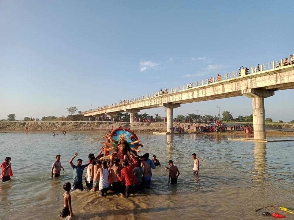 कोरोन भाइरास कोभिड –१९ जोखिमा केहि घटेपछि हर्षोल्लासका सथ दुर्गाभवानीको प्रतिमा रामघाटमा विसर्जन