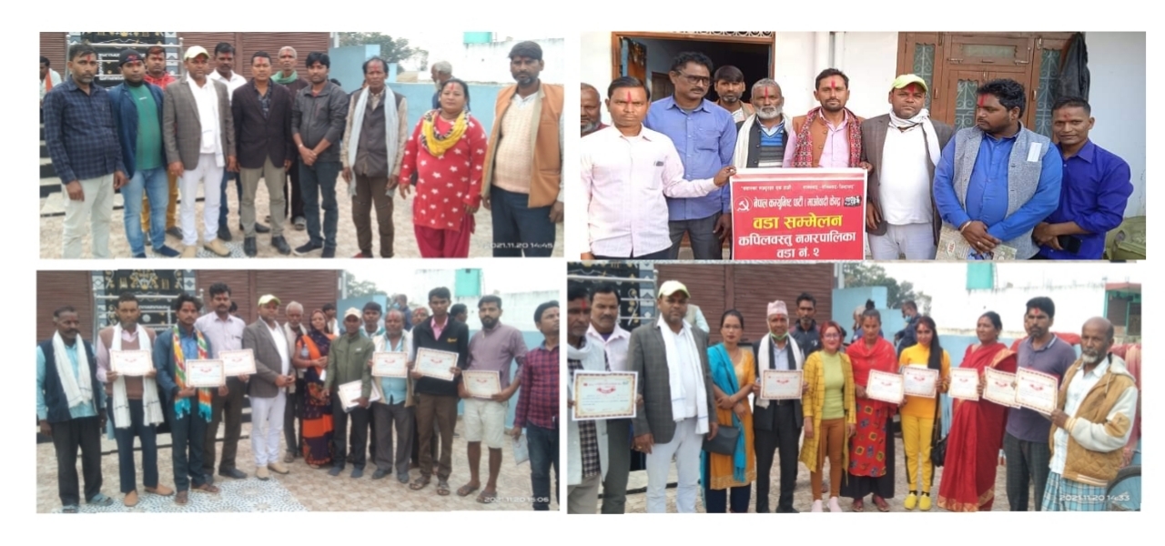 यसै क्रममा कपिलस्तु नगरपालिकका १ देखी १२ सम्मका सबै वडामा सम्मेलन सम्पन्न भएको छ । कपिलवस्तु नगरपालिकाको १२ वडामै २९ सदस्यीय कार्य समितीको चयन गरिएको छ । सम्पूर्ण वडामा सम्मेलन मार्फत नयाँ नेतृत्व चयन गरिएको छ । यसैक्रममा वडा नम्बर १ देखी १२ सम्म क्रमश: प्रितम पांडे, अजय चौबे, गणेश कुमार श्रीवास्तव, बृज बिहारी कुर्मी, ओम बिलास बरई, सफीउर रहमान, राम बाशिस्ठ कुर्मी, अनारुल्लाह मुसलमान, कृष्ण गोपाल के. सी. , रामदेव शुक्ला, कलामुद्दीन मुसलमान र राम अधारे कोहार अध्यक्ष पदमा निर्विरोध रुपमा निर्वाचित भएका छन् ।