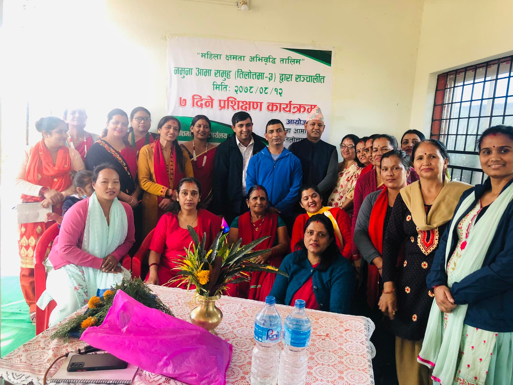 महिला सशक्तीकरणमा योगदान पु¥याउने उद्देश्यसहित रुपन्देहीको तिलोत्तमा–३ स्थित नमूना आमा समूहले “महिला क्षमता अभिवृद्धि तालिम” सम्पन्न गरेको छ ।
