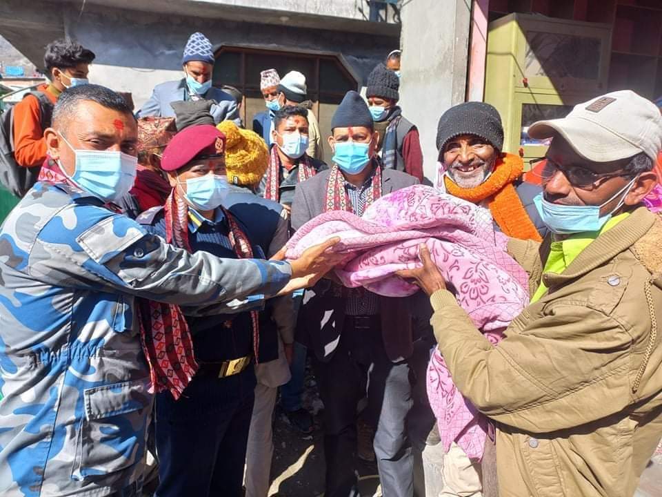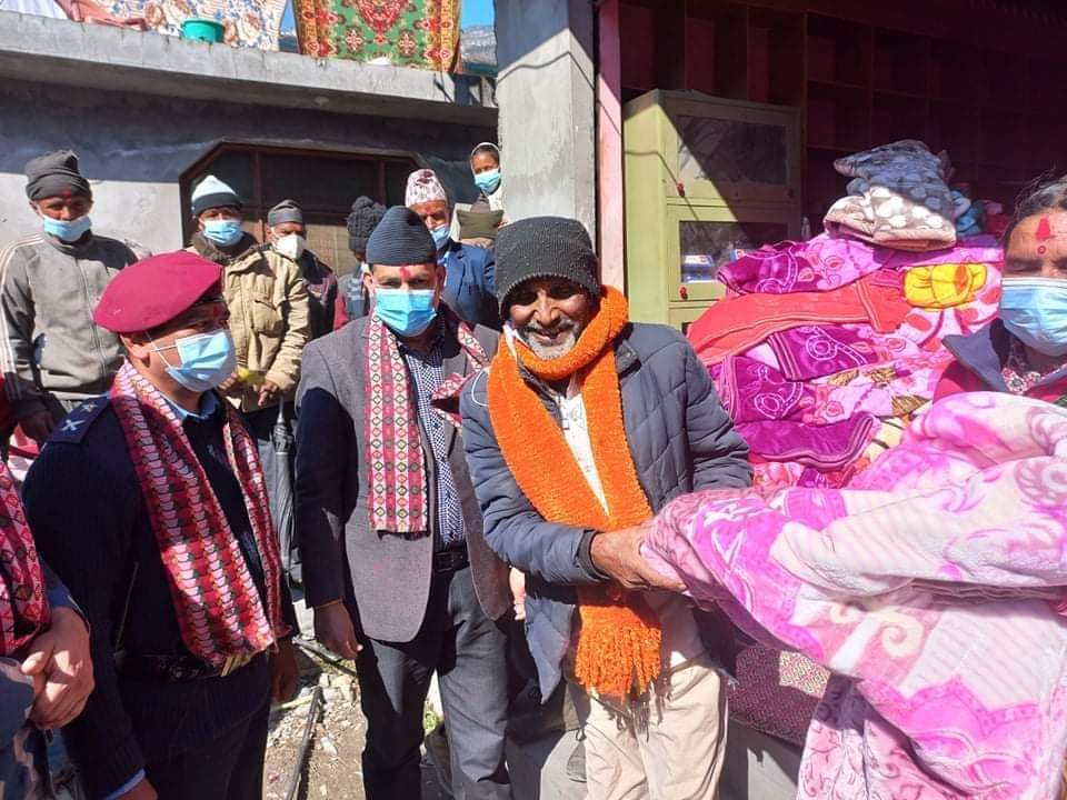 आज बझाङ जिल्लाकाे जयपृथ्वी नगरपालिका वडा नम्बर एक देखि ११ वडामा रहेका अपांगता भएका व्याक्तिहरुलाइ कम्मल वितरण गरिएको हाे । सदरमुकाम चैनपुरमा एक कार्यक्रमका बिच ११० वटा तातो कम्मल बितरण गरिए थियाे । जयपृथ्वी नगरपालिकाकाे आर्थिक सहयाेग र प्रमुख जिल्ला अधिकारी बाबुराम अर्यालकाे व्याक्तिगत सहयाेगमा कम्मल वितरण गरिएको सचिव पदम रावलले बताउनुभयो ।