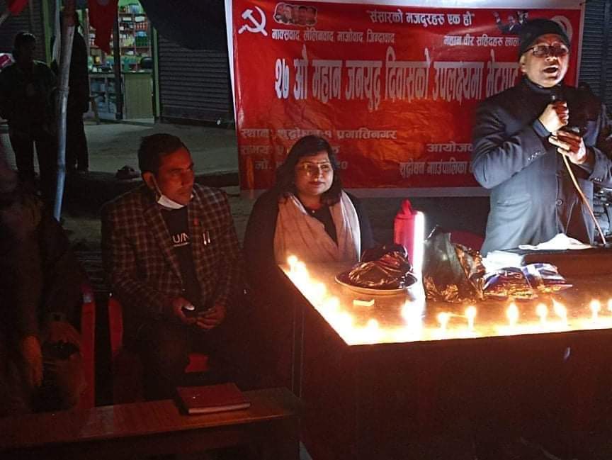 जनयुद्ध दिवसको अवसरमा आयोजित सो कार्यक्रममा नेकपा माओवादी केन्द्रका कपिलवस्तु इन्चार्ज कमल चुडालिले देशमा क्रान्तिकारी परिवर्तनको निम्ति जनयुद्धमा सहभागी भएर आफ्नो प्राणको आहुति दिने महान् सहिदहरुप्रति भावपूर्ण श्रद्धाञ्जली अर्पण गर्दै शाहीदका सपना पुरा गर्न सबै कम्युनिस्ट एक भएर लाग्नु पर्ने बताउनु भएको थियो ।