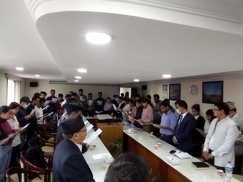 इन्जिनियरिङ सेवा सिभिल समुह अन्तर्गत विल्डिङ र आर्किटेक तर्फ ४१ र जनरल उपसमुहतर्फ १८ जना इन्जिनियरहरुलाई मन्त्रालयका सचव डा. रमेशप्रसाद सिंहले सपथ खुवाएका थिए ।