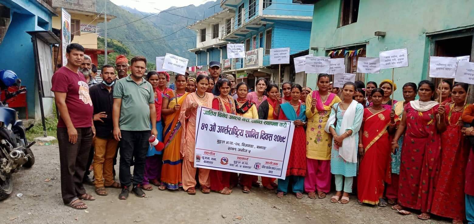 बुङ्गल नगरपालिकामा युनाइटेड मिसन टु नेपाल र बझाङ कलष्टर काे आर्थिक सहयाेगमा अन्तर्राष्ट्रिय शान्ति दिवस सम्पन्न भएको छ ।