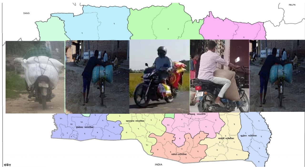 उक्त रोजगार कानुनी रुपमा मान्यता नपाए पनि कानुनको रखवालाबाट मान्यता पाए सरह छ । नेपाली साना उधोगलाइ धारासायी बनाउने यो रोजगारलाइ समान्य रुपमा क्यारिङ्ग भन्ने गरिन्छ । क्यारिङ्ग अथात समानको तस्करी गर्नु हो। कपिलवस्तुको मर्यादपुर , कृष्णनगर , हर्दौना , भिल्मि , चाकरचौडा जस्ता नाकाबाट दिन्हु लाखौंको समान मोटरसाइकलबाट तस्करी गरि विभिन्न गोदाममा पुर्याइन्छ ।