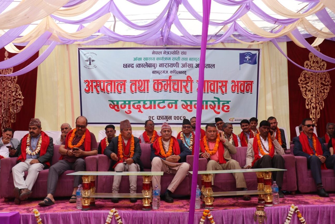 कृष्णनगर नगरपालिका–९, बहादुरगंजस्थित छन्द कालेबाबु नारायणी आँखा अस्पतालको नवनिर्मित अस्पताल तथा कर्मचारी आवास भवनको उद्घाटन गरिएको छ। बुधबार सम्पन्न उद्घाटन समारोहमा विभिन्न सरोकारवालाको उपस्थिति रहेको थियो।