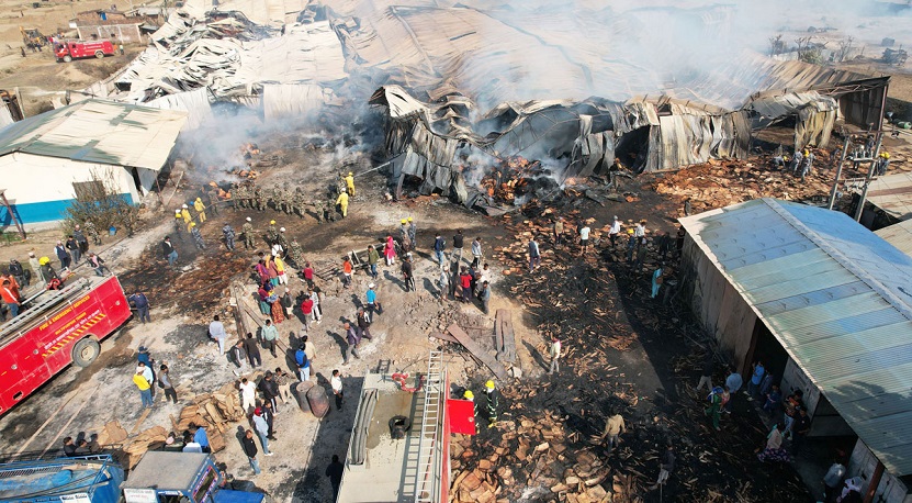 दाङको प्लाई उद्योगमा लागेको आगो अझै नियन्त्रणमा आउन सकेन