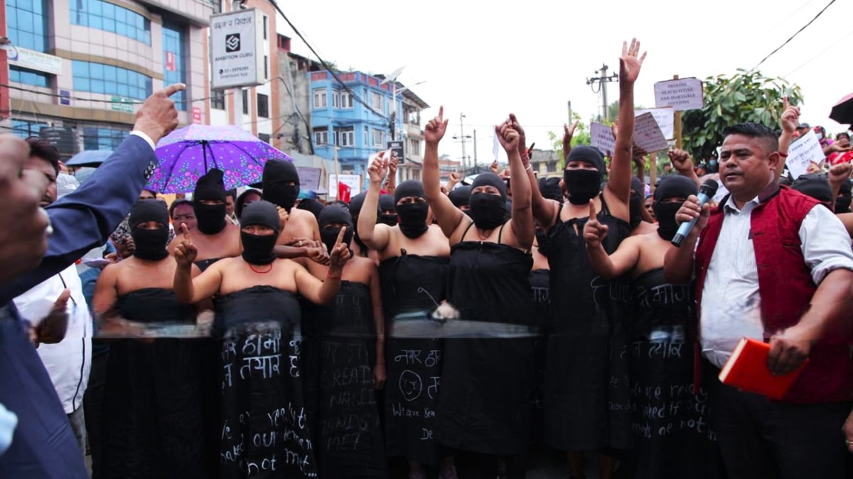सहकारी संस्थाबाट ठगिएका पीडितहरूले सोमबार काठमाडौंको माइतीघर मण्डलामा अर्धनग्न प्रदर्शन गरेका छन्। ‘आन्दोलन रहर नभई बाध्यता हो’, ‘हाम्रो धैर्यलाई कमजोरी नठान’ जस्ता नारासहित उनीहरूले विरोध प्रदर्शन गरेका हुन्।