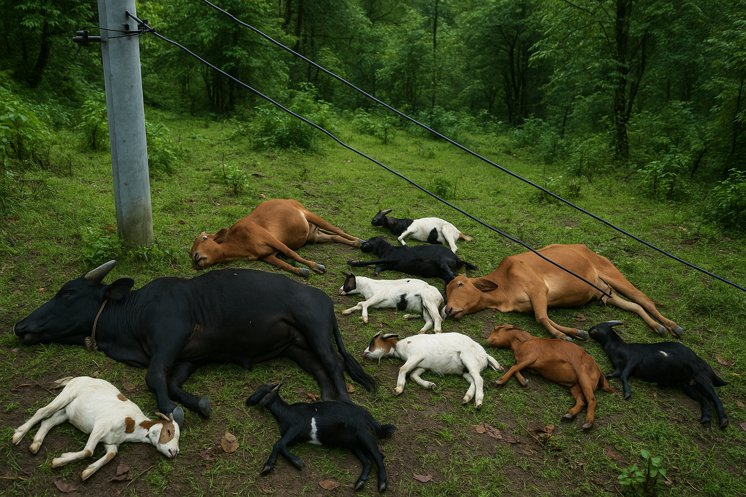 ताप्लेजुङको मेरिङदेन गाउँपालिका–५ थिङलाबुमा करेन्ट लागेर १० ओटा पशु चौपायाको ज्यान गएको छ। शुक्रबार दिउँसो खुवागु भन्ने स्थानमा जंगलबाट गोठ फर्काइँदै गर्दा करेन्ट प्रवाह भई स्थानीय विजय एभेङ लिम्बूका गोरु, गाई र बाख्राहरू मृत अवस्थामा फेला परेका हुन्।