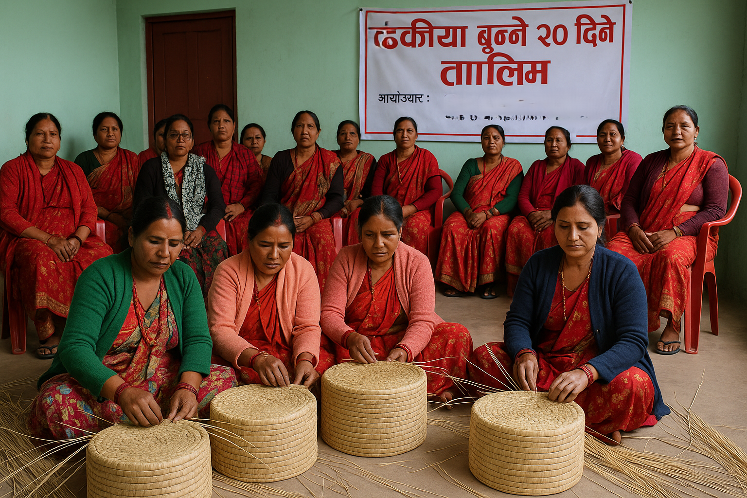 तालिममा १५ जना महिलाहरू सहभागी छन्, जसले ढकियामार्फत आफ्नो पहिचान बुन्दै आत्मनिर्भर जीवनको नक्सा कोर्न थालेका छन्।