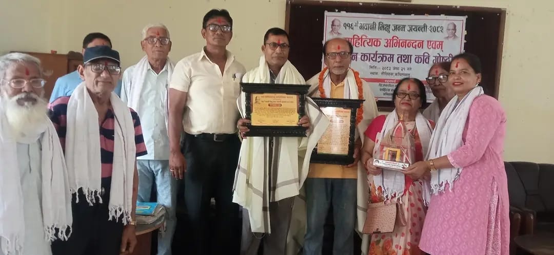 ११६ औं भवानी भिक्षु जयन्तीको अवसरमा आयोजित विशेष कार्यक्रममा अवधी साहित्यकार श्याम प्रकाशलाल श्रीवास्तवलाई “भवानी भिक्षु स्मृति पुरस्कार” प्रदान गरिएको छ। सोही अवसरमा वरिष्ठ साहित्यकार हरिराज शर्मालाई कदर पत्रद्वारा सम्मानित गरिएको छ।