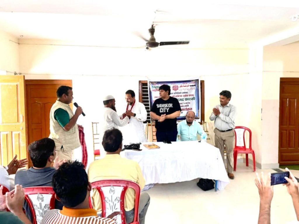 नईमिया नेपाल समितिको आयोजनामा मंगलवार कृष्णनगर नगरपालिका–२ स्थित संस्थाको कार्यालय प्रांगणमा आयोजित उक्त कार्यक्रममा अध्यक्ष हाजी अकिल मियाँले सांसद फारूकीलाई खादामाला अर्पण गर्दै स्वागत तथा आभार व्यक्त गरे।