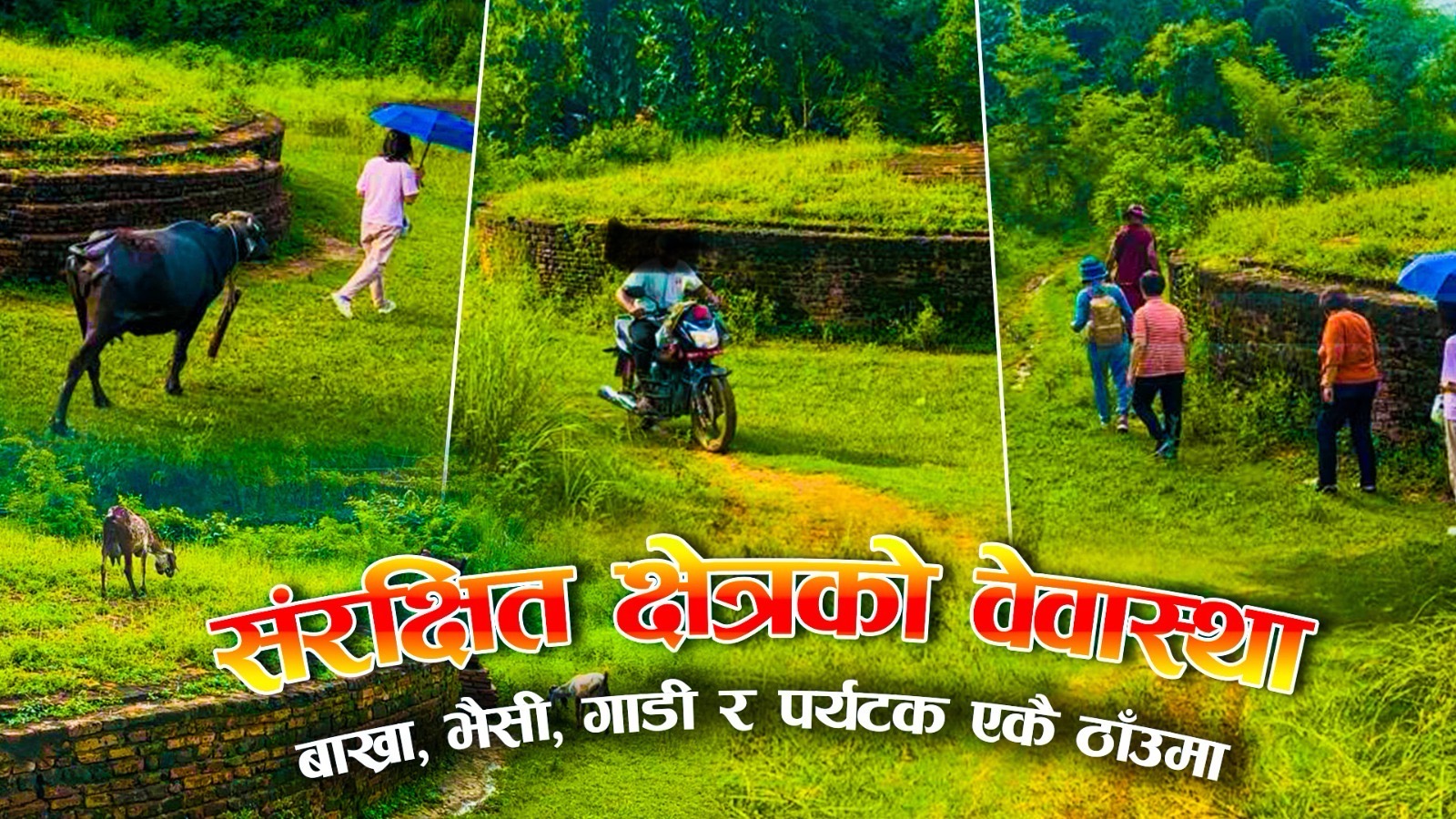 दुबै स्तूपबीचबाट साइकल, मोटरसाइकल, ट्र्याक्टरलगायतका सवारीसाधन खुलेआम आवतजावत गर्ने गरेका छन् भने भैँसी र बाख्रा स्तूपमै चढ्ने अवस्था बनेको छ। यसले स्तूपको संरचनामा क्षति पुर्याउनुका साथै यहाँ आउने पर्यटकलाई समेत असुरक्षित बनाएको छ। यस्तै स्तुप वरिपरि प्लास्टिक जन्य फोहोर र पशु जन्य गोबरले त्यहा आउने पर्यटकलाइ सास्ति समेत हुने गरेको छ ।